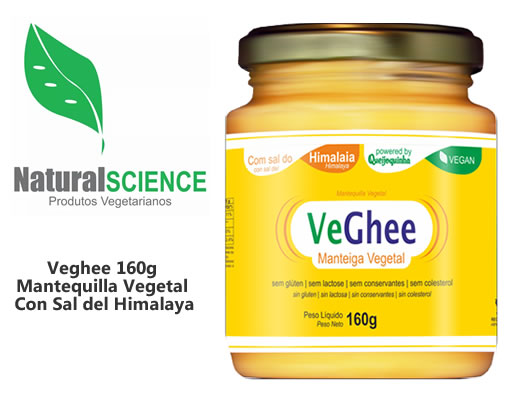 Natural Science produce la VeGhee con aceite de Palma brasilero (de Pará), no procedente de la deforestación. Extraído por métodos físicos (prensado mecánico) sin usar disolventes u otras sustancias químicas. El procesamiento de este aceite se realiza de forma natural (físicamente), con productos naturales (ácido cítrico y tierra no activada). Manteniendo así el sabor y textura igual al de la tradicional Ghee, junto con la sal rosa del Himalaya para dar un toque especial en sus recetas.